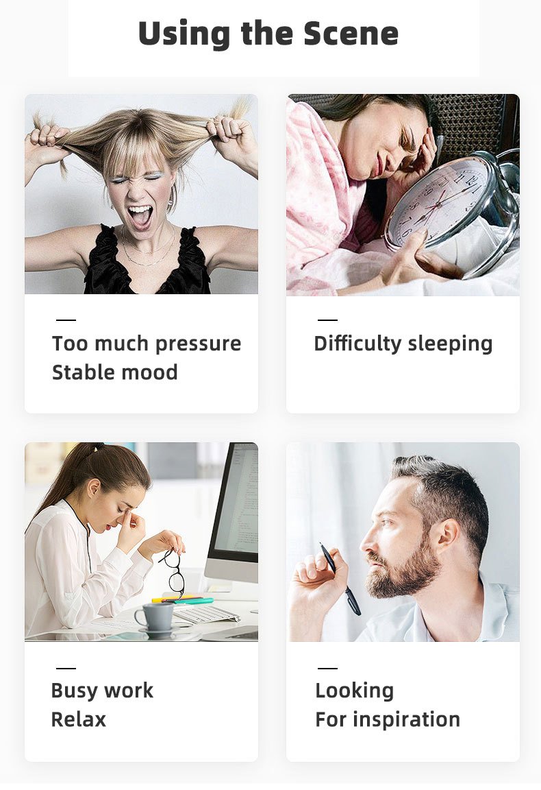 [Application Scenario] It is most suitable for head massage, it can improve blood circulation in the head, relieve fatigue, and eliminate tension and anxiety; it can also be used when looking for inspiration, which is definitely more effective.