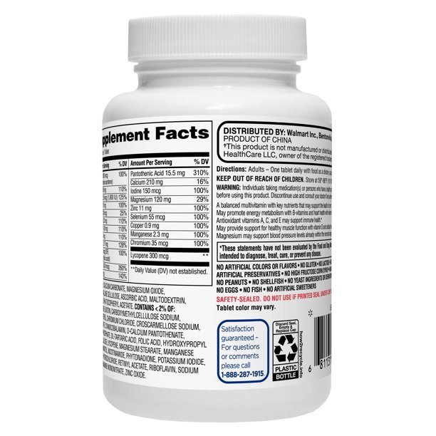 Equate One Daily Men's Multivitamin/Multimineral Supplement Tablets; 100 Count